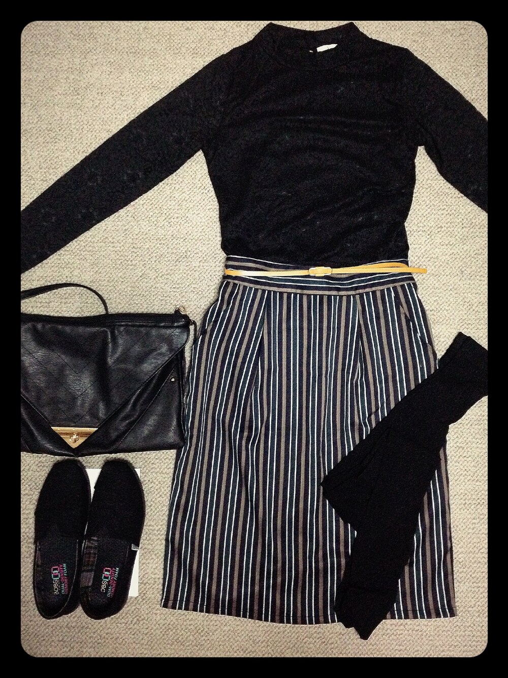 お気に入り、上品なスカートスタイル。 トップスと小物を全て黒に揃えてスッキリと。 見づらいけど、レースがあしらわれたブラウスです。合わせやすい。 ベルトはからし色でポイントをつけました! 今年は本当可愛いスカートが多いー!