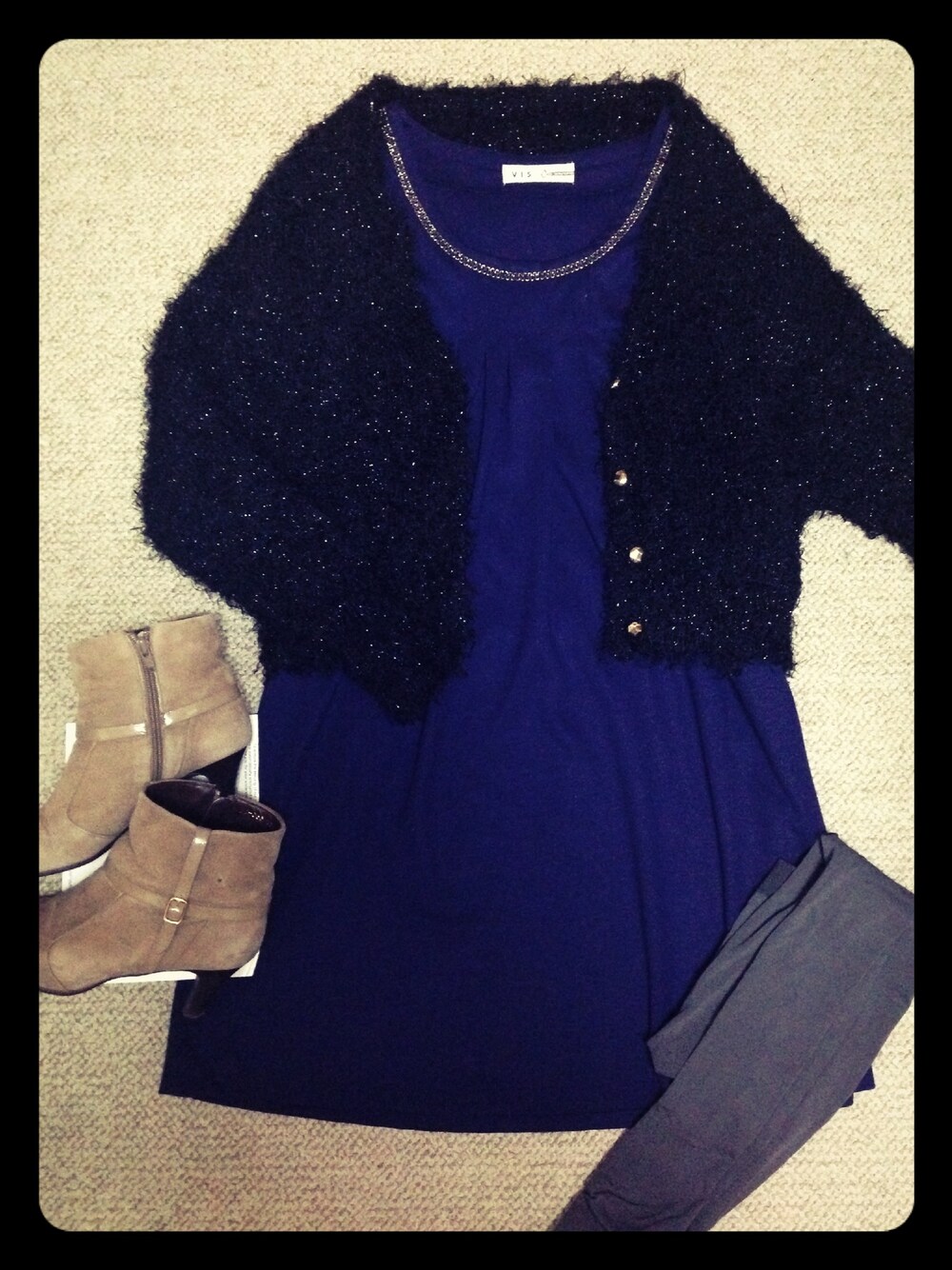 今日はワンピーススタイル。 ラメが少し入ったボリュームのあるカーディガンを合わせて少し華やかに。