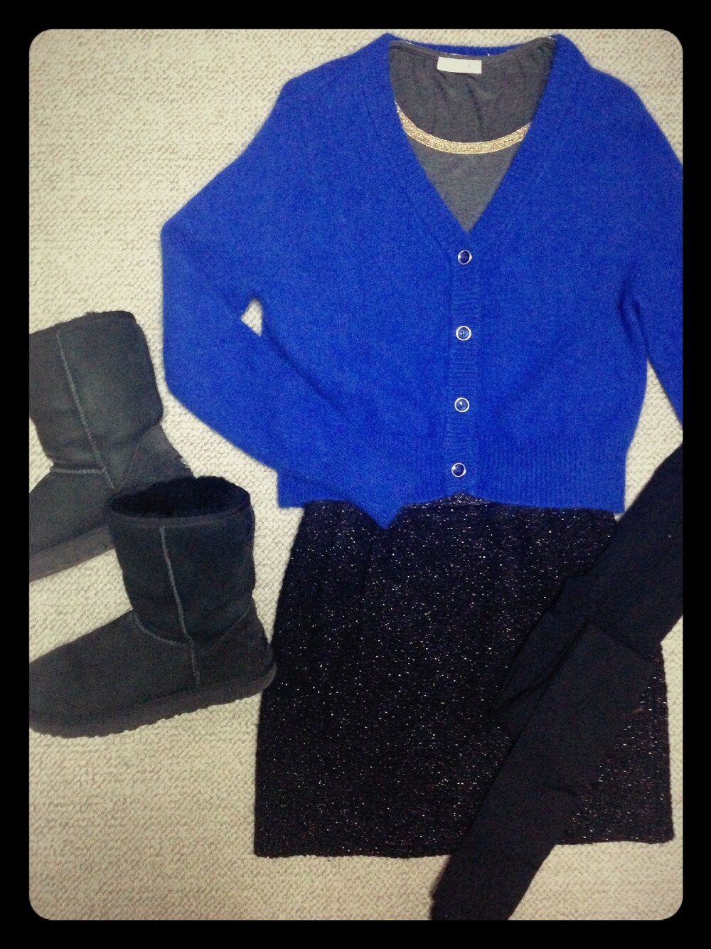 ロイヤルブルーのアンゴラニットはあたたかくて、一枚で存在感抜群な所がお気に入り。 本当はヒールとか合わせたいけど、防寒重視で結局ムートン( ゚д゚)