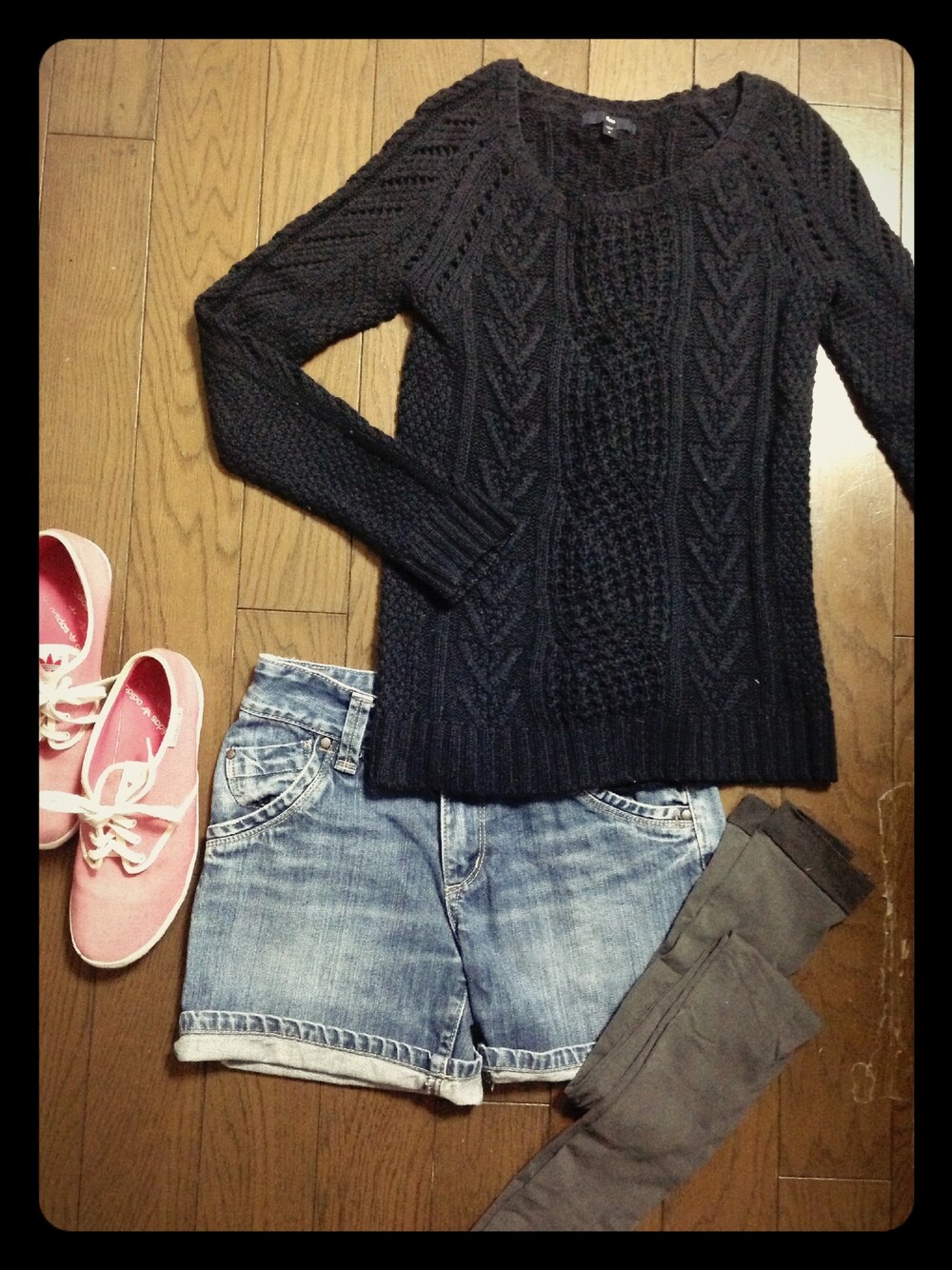 キャンバススニーカーが履きたくなって、久々にadidasのピンクスニーカーを。ネイビー基調のコーディネートにぴったり。足元に明るい色を使うコーディネート大好き!