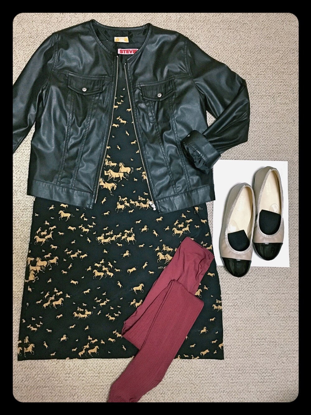 今日は涼しかったので久々にタイツ! 全体的に黒を基調としたコーデだったので、タイツはボルドーに。先日GUに行った時とーっても安かったので、購入したタイツ。なかなかよかった。 コンパクトなレザージャケットはワンピースとの相性ばっちり。今年のヘビロテです。