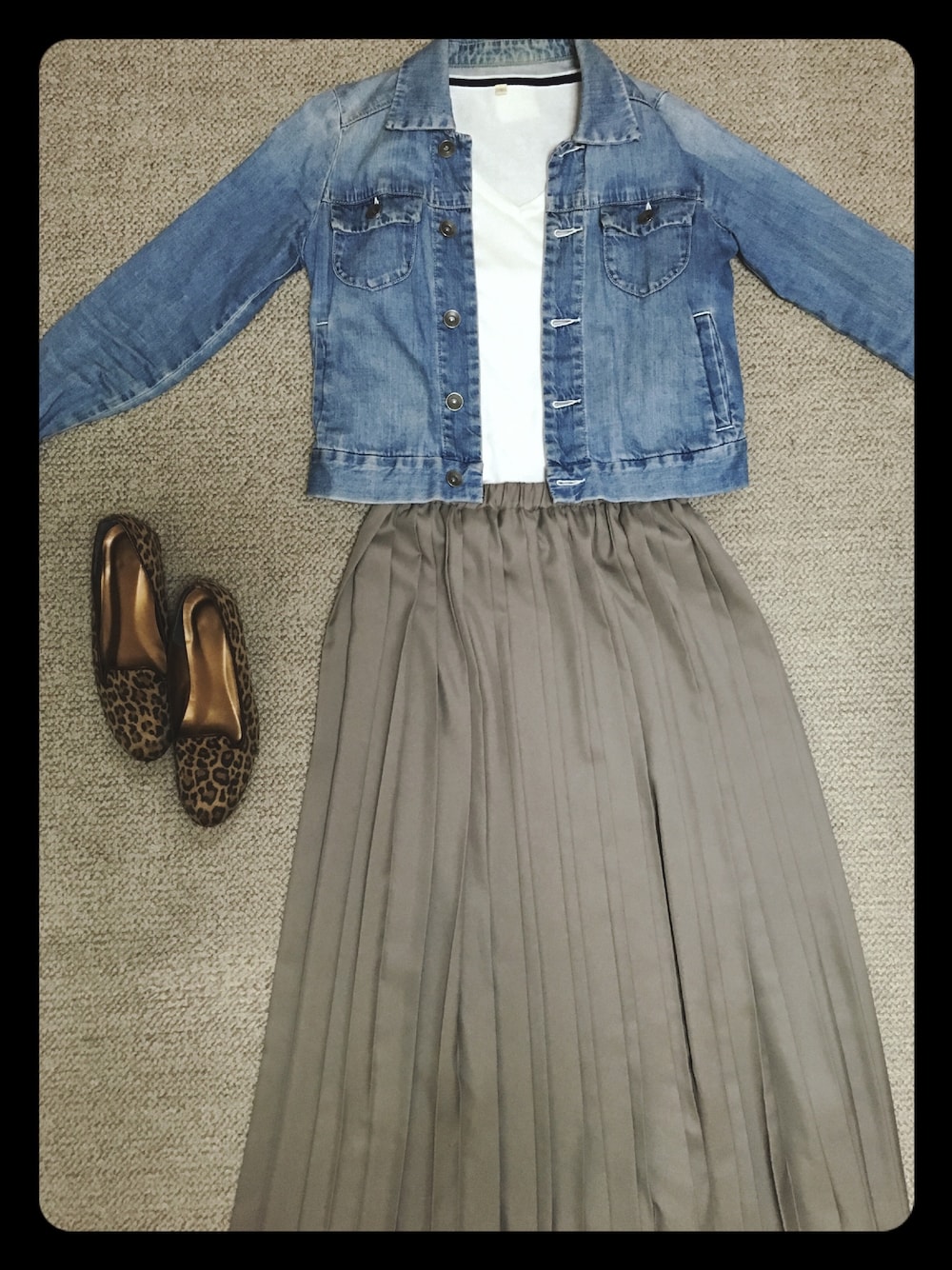 先日購入したプリーツロングスカートをあわせて。トップスも無地なので、足元にレオパード柄を入れてさらに秋っぽく。 このスカート、想像より合わせやすくてラインも綺麗。
