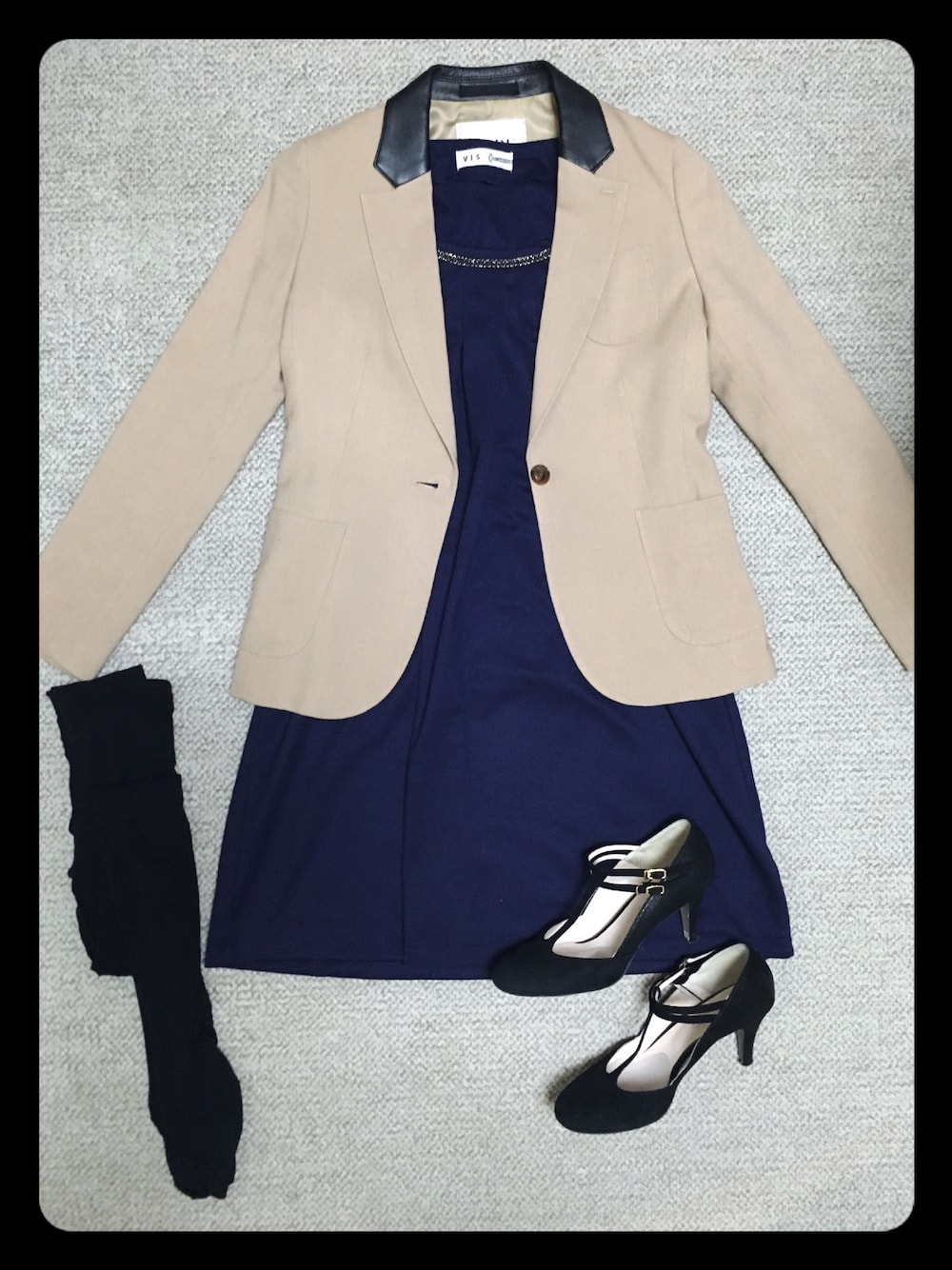今日は綺麗め出勤スタイル。ワンピースにジャケットをあわせて。靴もヒールにしてちょっと気合! ネイビーとベージュの組み合わせ大好きです。
