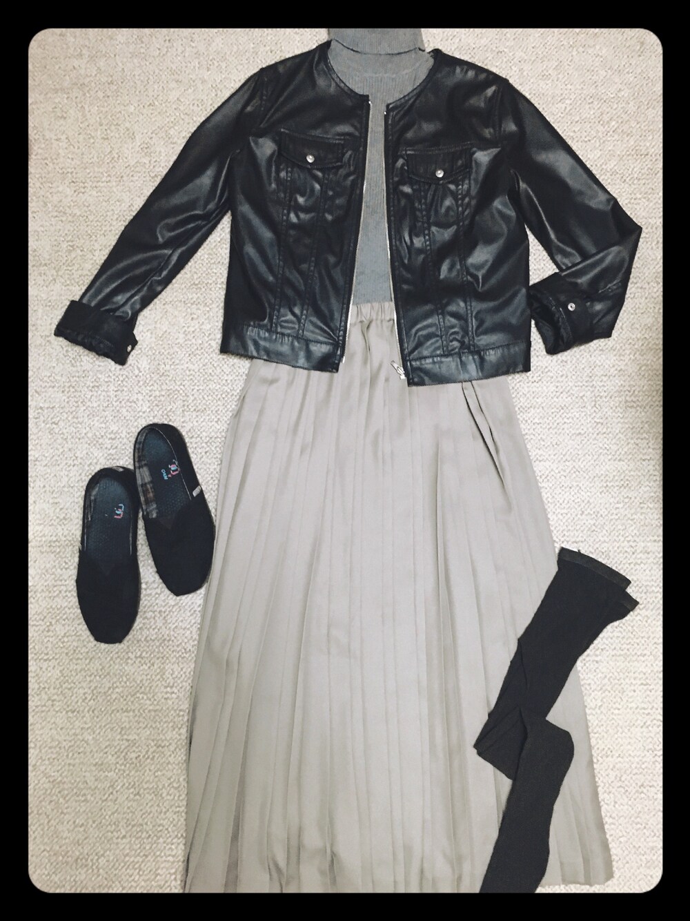 今日はディズニーランド! 舞浜は朝夜寒いのでタートルネックに、らくちんなのに綺麗目に見えるプリーツスカートを。 足元はがつがつ歩けるようスリッポンで。