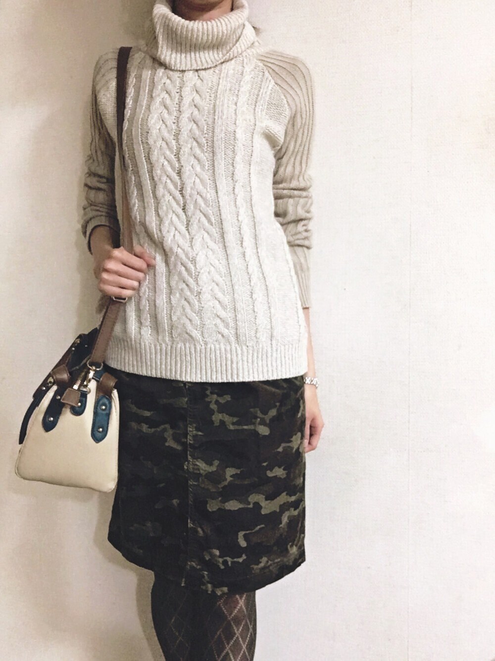 今日はかなり暖かいひだったのでニット一枚でサラッと。カモフラスカートもタイトなラインだと大人っぽくまとまります。 写ってませんが髪型もくるっとまとめてスッキリ。 春物が欲しくなる時期になってきましたー!