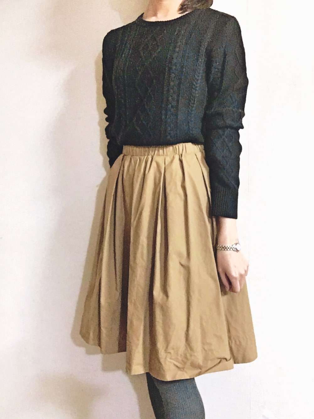 長めスカートが最近お気に入り。 ベージュと黒のコントラストがいい感じです。 暖かくなったらGジャンを合わせたいな。