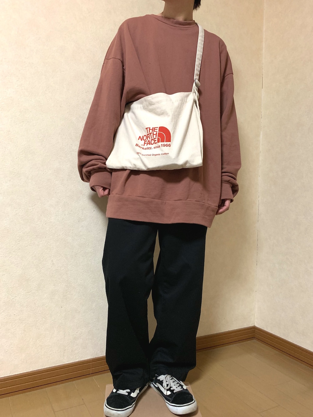色味がちょっと暗いから… ノースのショルダーバッグで、少し明るめに!