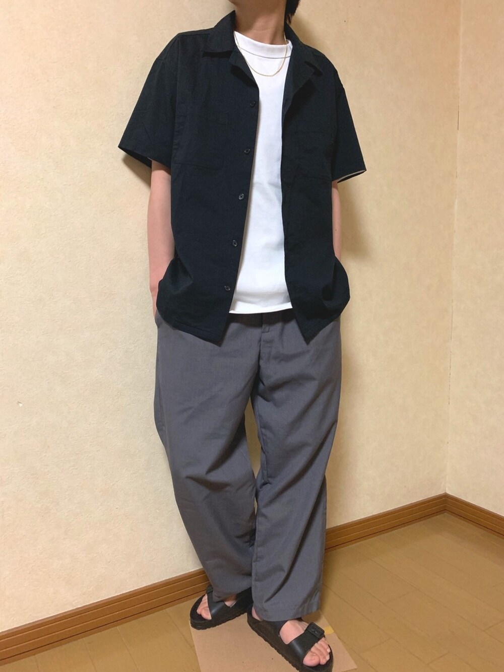 オープンカラーシャツ×サンダル♪ ブラックからホワイトチラ見せで、クールに!笑