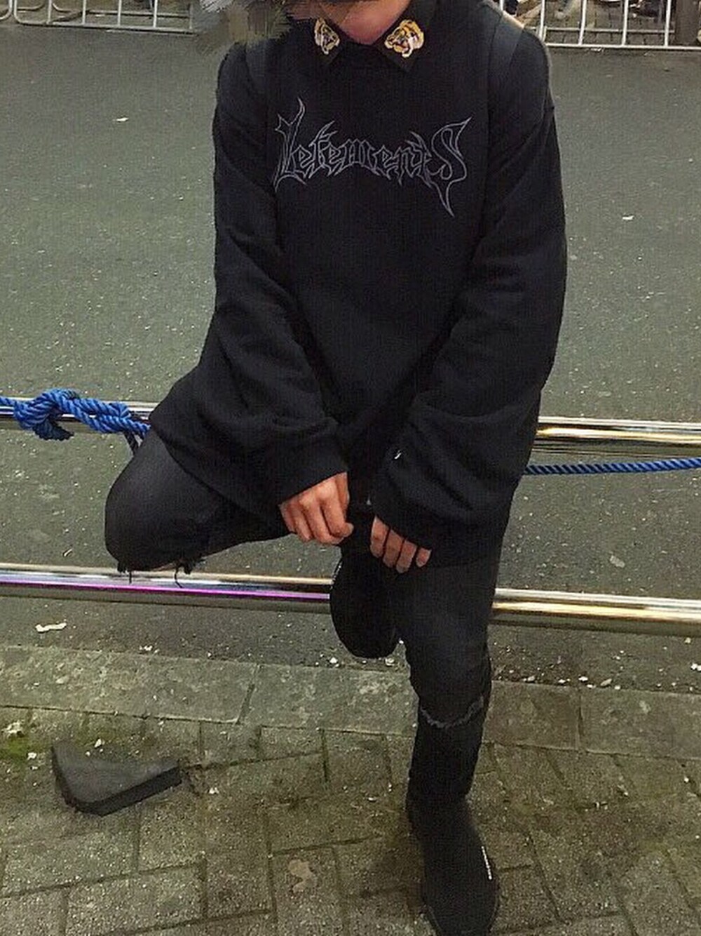 ブラック系のシャツ/ブラウスを着用したメンズの秋コーディネートの1枚目の写真