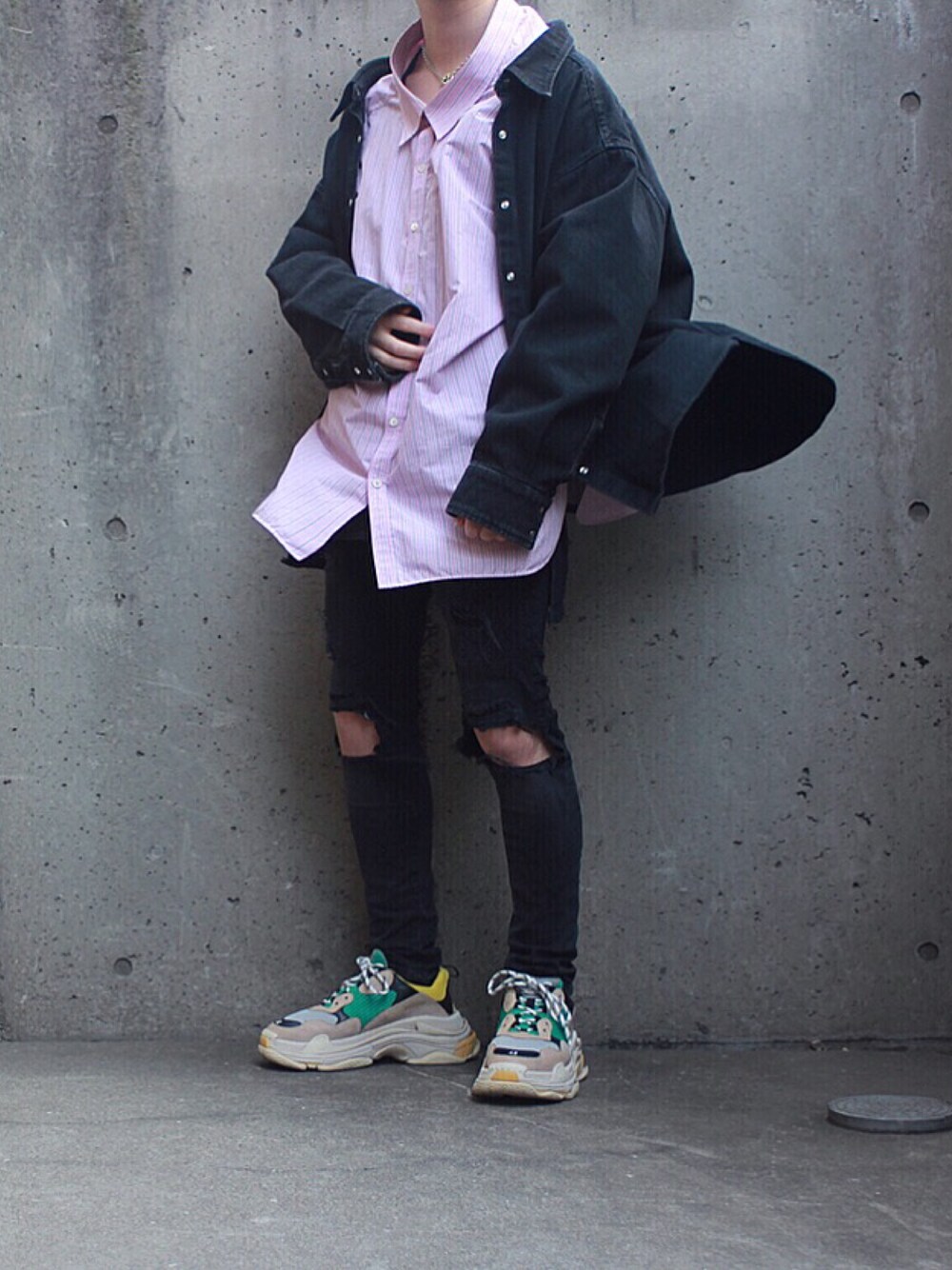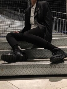 グリーン系のシューズを着用したメンズの冬コーディネートの1枚目の写真