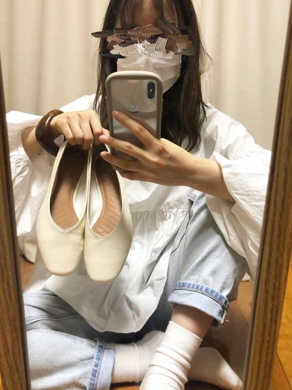 ドットのスカーフとネックレス付けてるけど全く見えん\(^-^)/ ローリー大好き\(^-^)/ バングルたくさん欲しいなあ 仕事終わりだから髪の毛ぺっしゃげとる😧