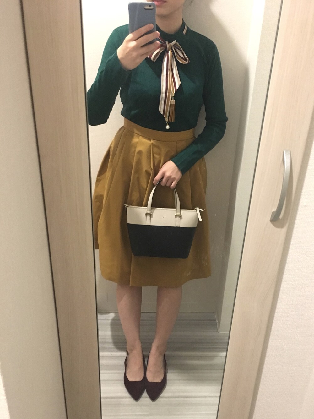 ニットとスカートのプチプラコーデ💓 韓国のメーカーすごく安カワでした☺️ くすみ系の色で統一してます✨