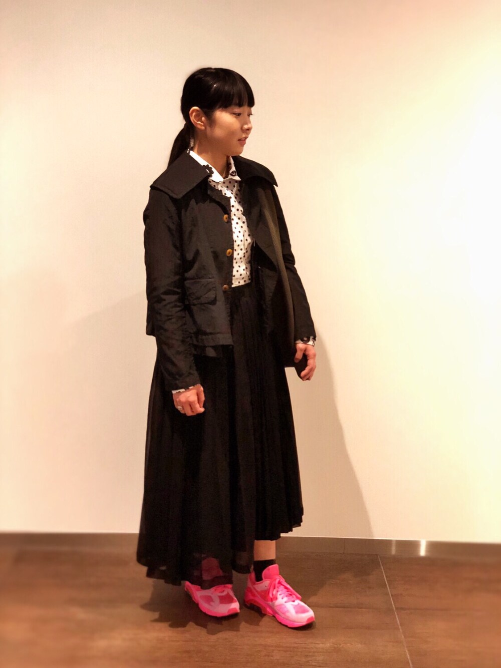 BLACKのシースルースカートが主役。 スカートの上に履くも良し、柄パンツの上に履くも良し、万能アイテムです! 今日はジャンスカと合わせました。