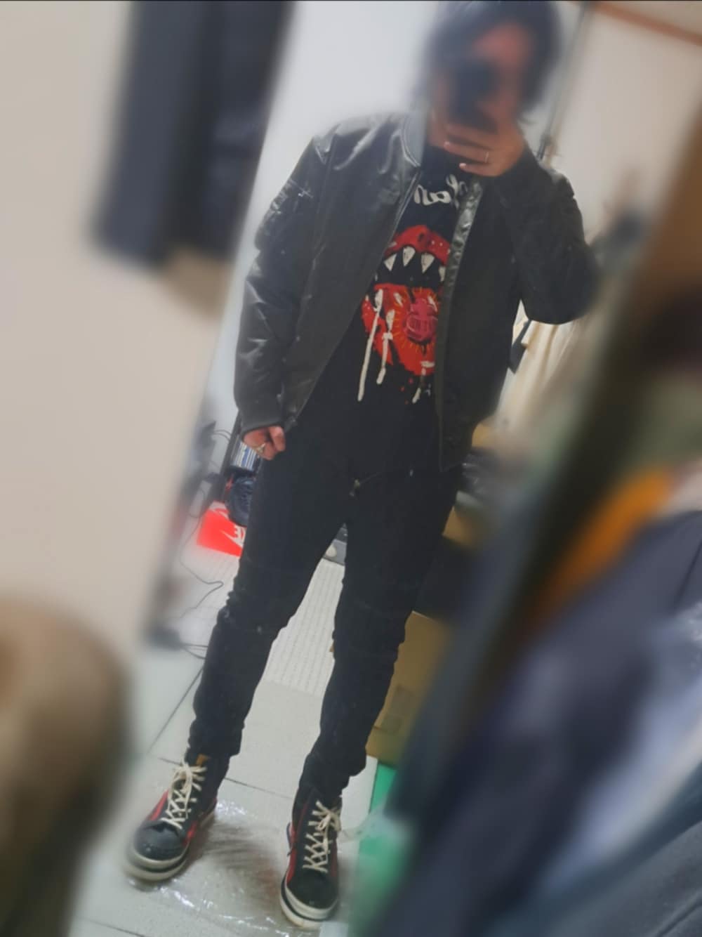 glambで購入したTシャツにユニクロのMA1を合わせました まだ夜は寒い