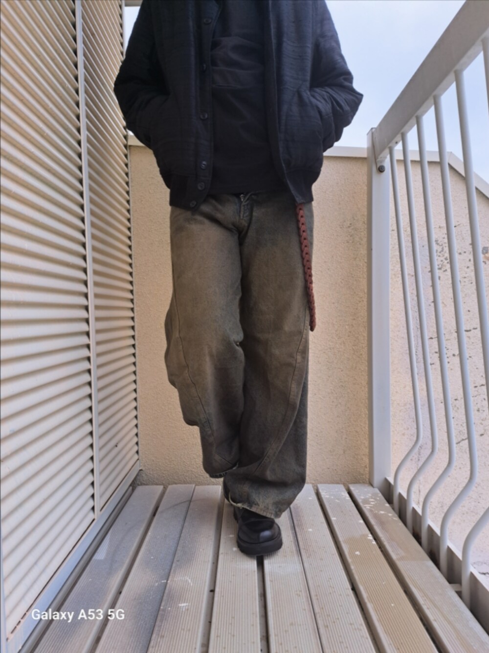 ブラウン系のデニムパンツを着用したメンズの夏コーディネートの1枚目の写真