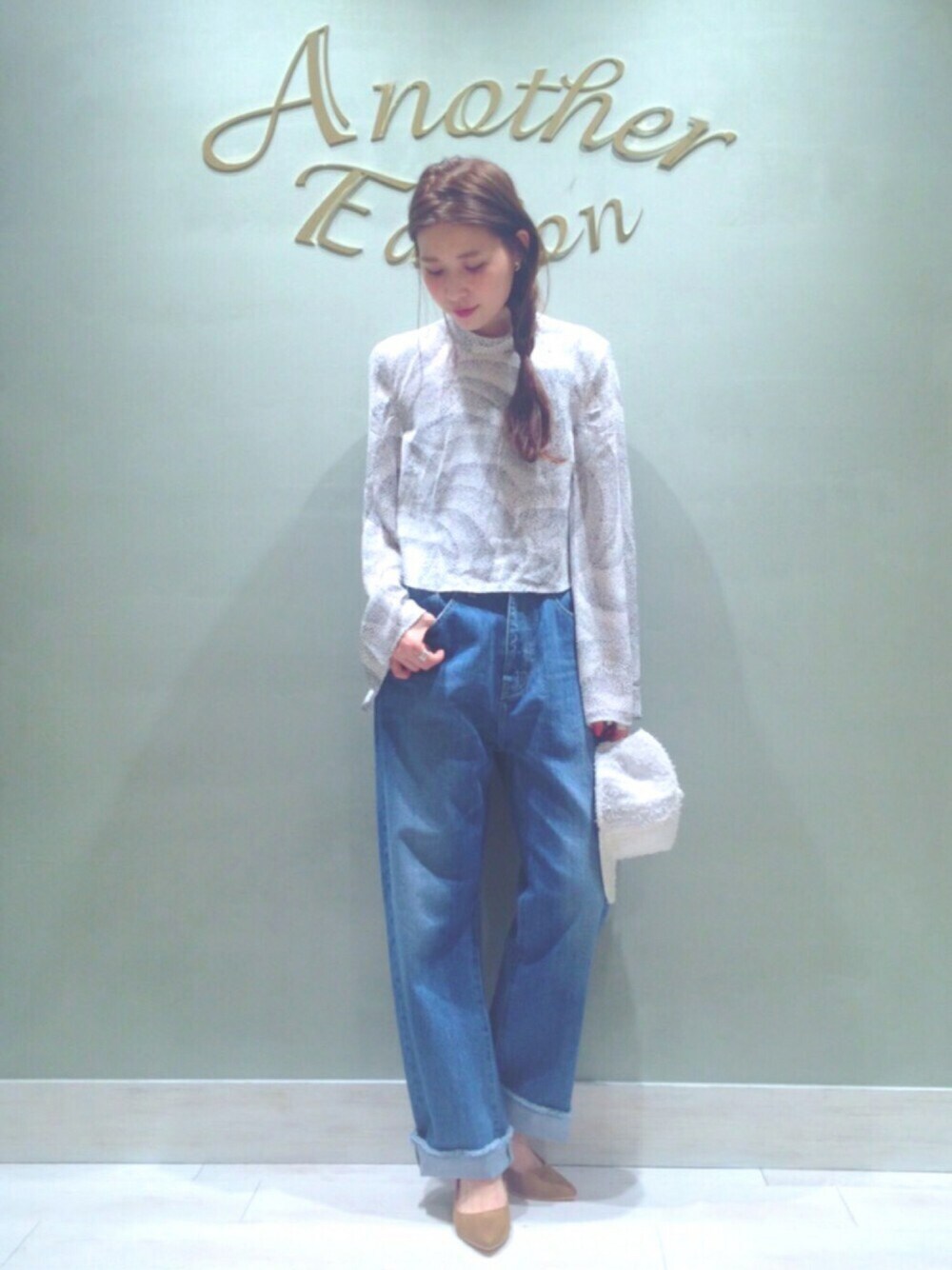 シンプルでクリーンなデザインが素敵な The Fifth Lavelのブラウス。 大人気のストレートデニムと合わせました!