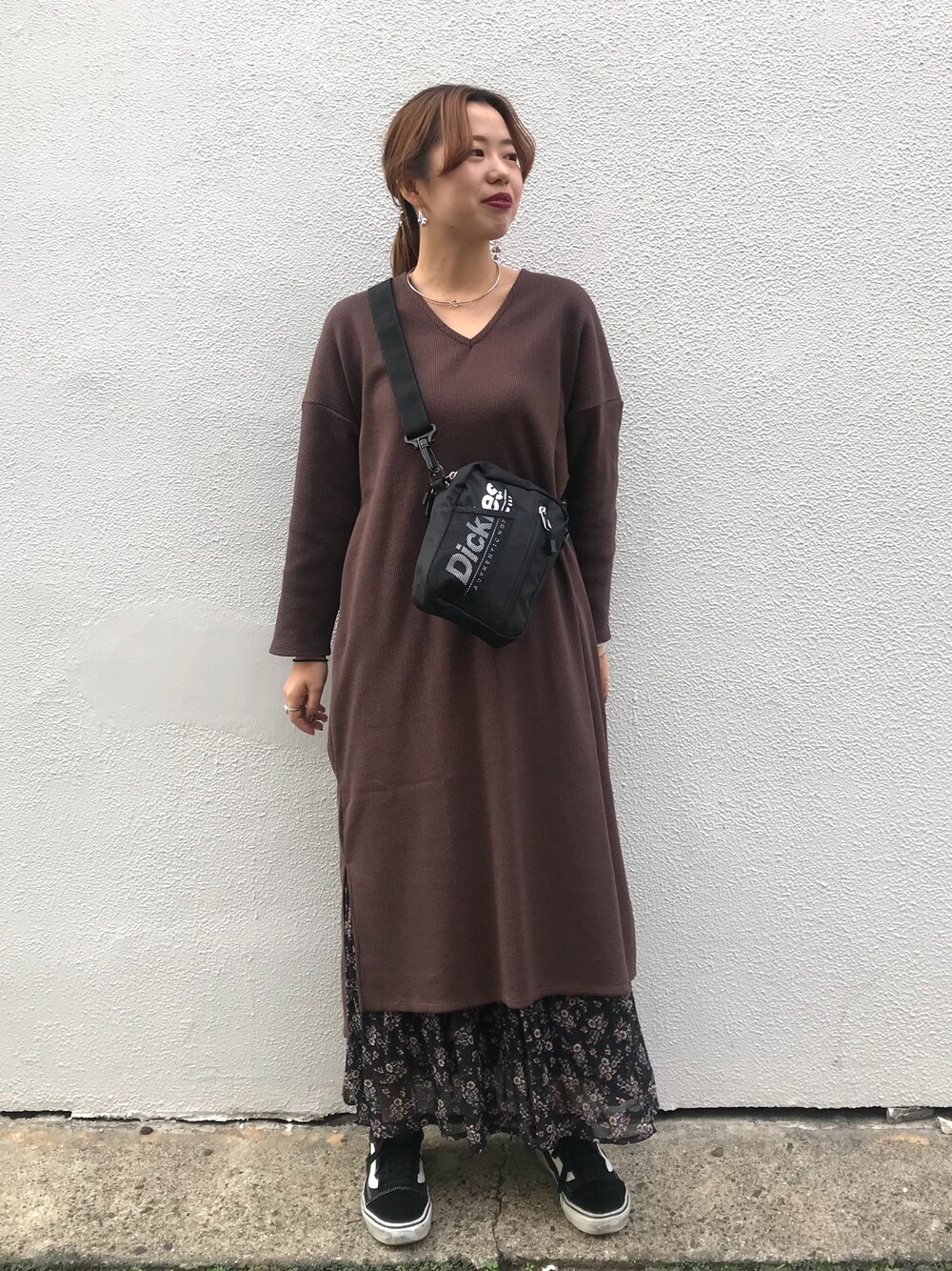 こんにちは☀︎ ワッフルワンピで楽チンコーデでまとめました! スニーカーで甘くなり過ぎないよう カジュアルスタイルがオススメです♡