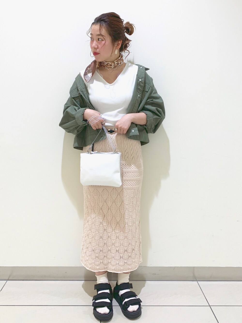 こんにちは!いいね、お気に入りありがとうございます♡ かぎ針スカートが可愛いお気に入りコーデです! サンダルも履きやすくてスポーティーにまとめました♡