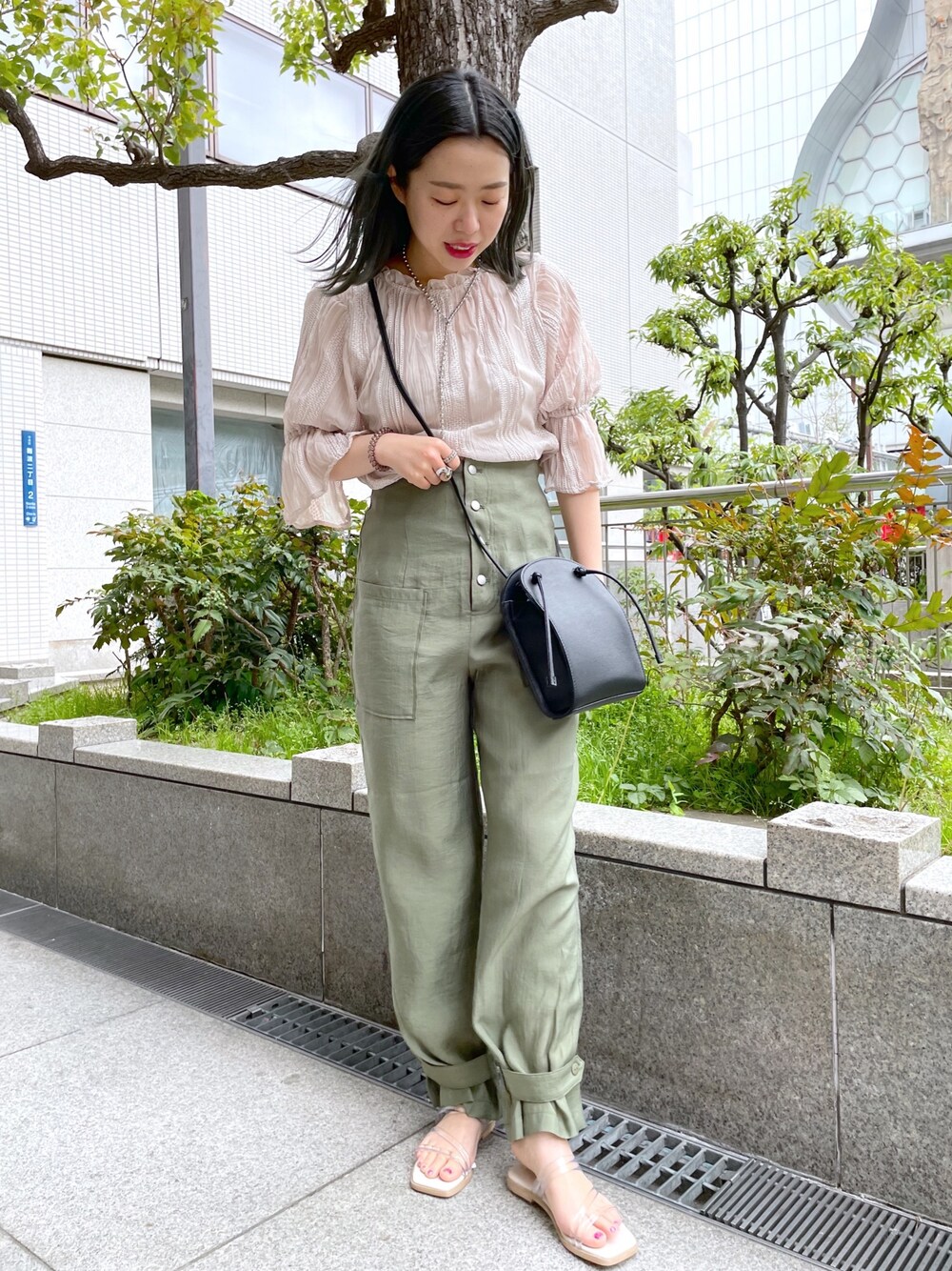 こんにちは! いつもいいね!お気に入りありがとうございます◎ ベージュ×カーキで春コーデでまとめました☆ ハイウエストのカーゴパンツは、デザイン性もあり可愛いですよ! トップスは、楊柳素材でシワにもならずお手入れしやすいです◎