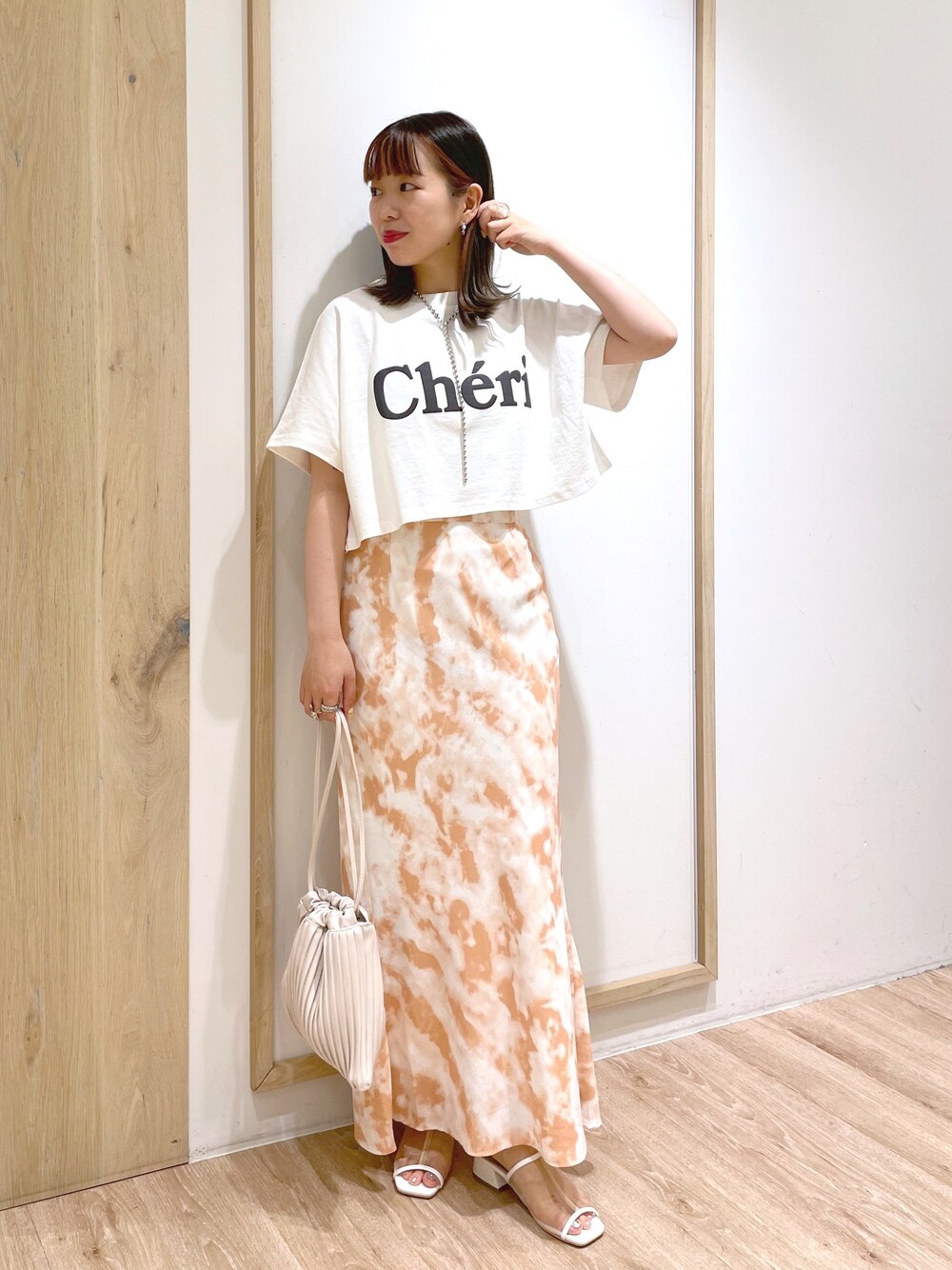 ロゴT×タイダイスカート合わせでまとめました🦋 ロゴTは、発泡プリントなのでオシャレに決まり、 ショート丈なのでスカートにも合わせやすいですよ💖