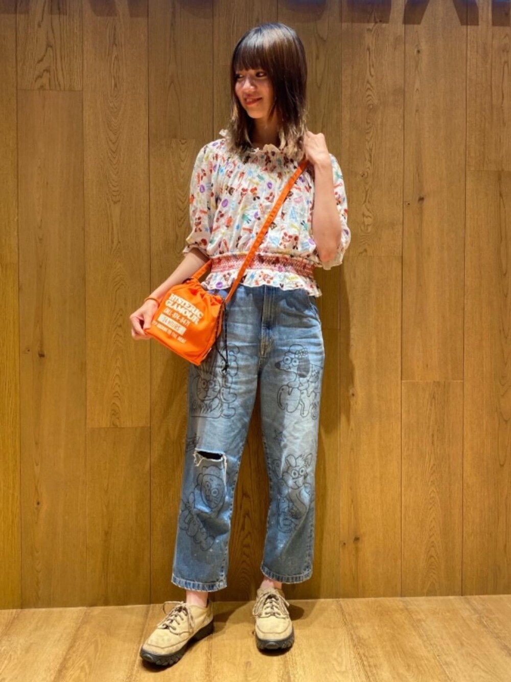 E r i K a(HYSTERIC GLAMOUR池袋パルコ店)のデニムパンツ「DOODING ANIMALS 8分丈ワイドデニムパンツ」を使ったコーディネート