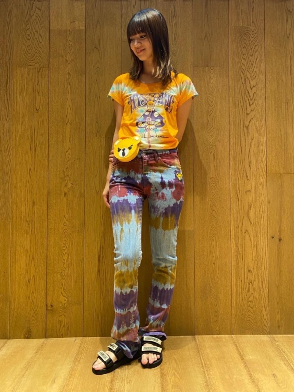 タイダイコーデ✨✨ ベアーちゃんが3人います🎵🎵🎵笑 パンツの履き心地が最高です✨✨伸縮性あるので動きやすかったです🎵足長効果も🥺🥺🥺⭕️⭕️