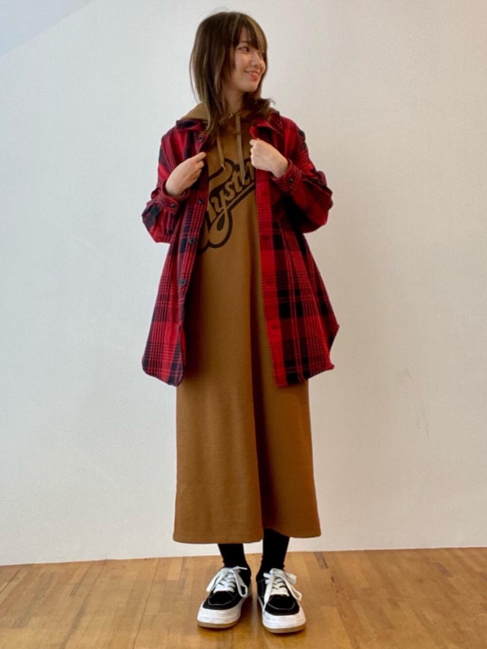 赤✖️茶 かわいい❤️ こちらのワンピース、裏地もベロアみたいにふわふわであったかいです^_^表地はサーマル地、着膨れもしません!おすすめ!