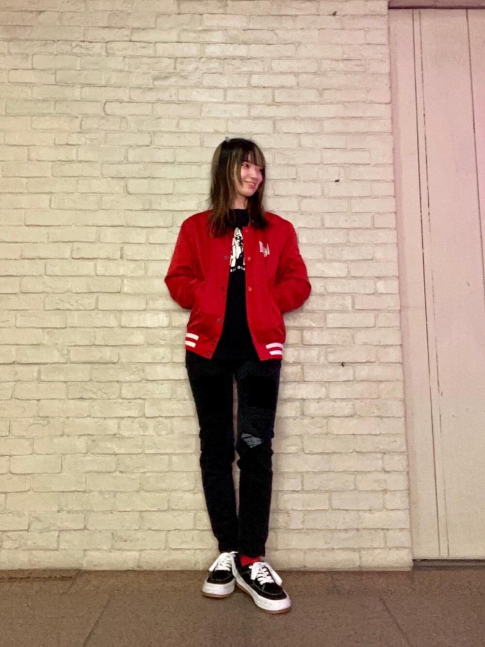 E r i K a(HYSTERIC GLAMOUR池袋パルコ店)のブルゾン「WOMEN ON MODERNICA刺繍 サテンジャケット」を使ったコーディネート