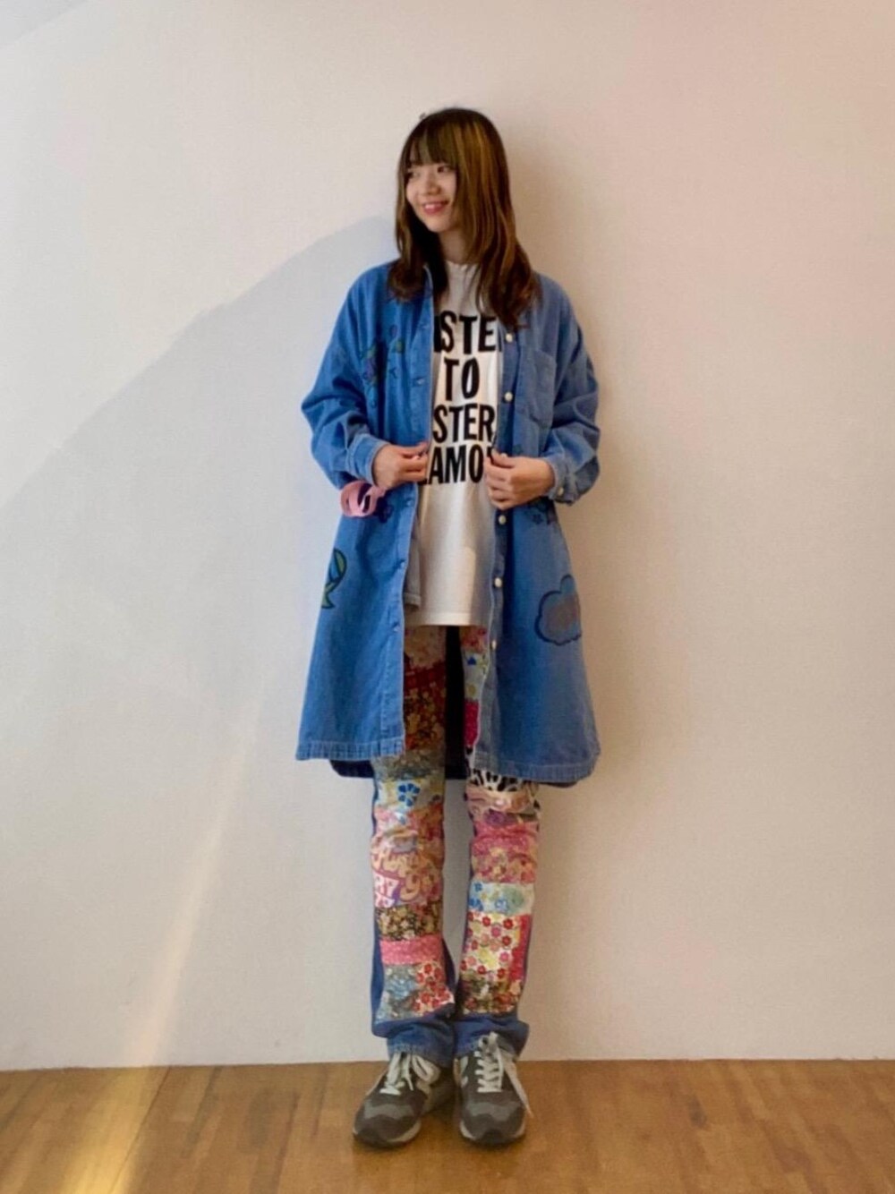 E r i K a(HYSTERIC GLAMOUR池袋パルコ店)のデニムパンツ「SUMMER OF 70Sパッチワークブーツカットデニムパンツ」を使ったコーディネート
