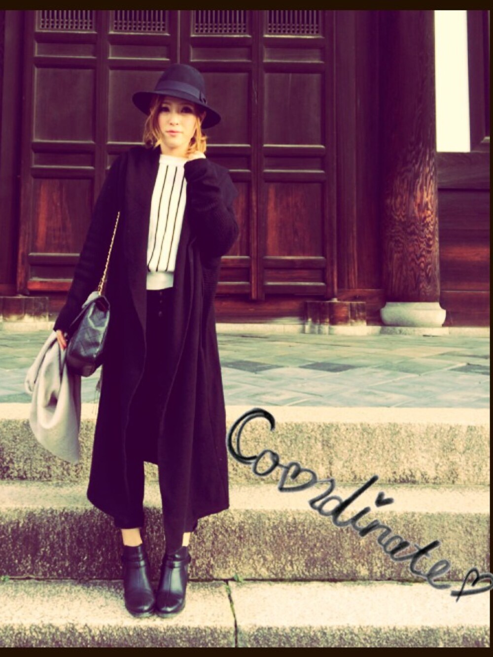 knitcoat...dazzlin HAT...EMODA tops...GU BAG...CHANEL bottoms...noname 紅葉スタイル♪ ストールはパールピンで留めてたのですが邪魔になって手に持ってしまってます。笑