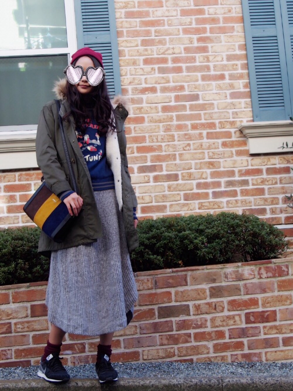 GUのセットアップニット バラで着まわしてます♪ スカートは前後が長めでサイドはちょっと短くなってるから寸胴に見えない🙆🏼 プチプラなのにデザイン性が高いGUがだいすき❤︎