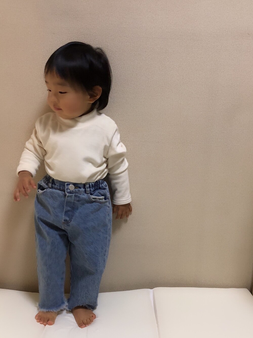 monmimiデニム可愛い❤️ 今度は白ニットとかに合わせようかな😍 冬でも裸足の元気っ子💪✨
