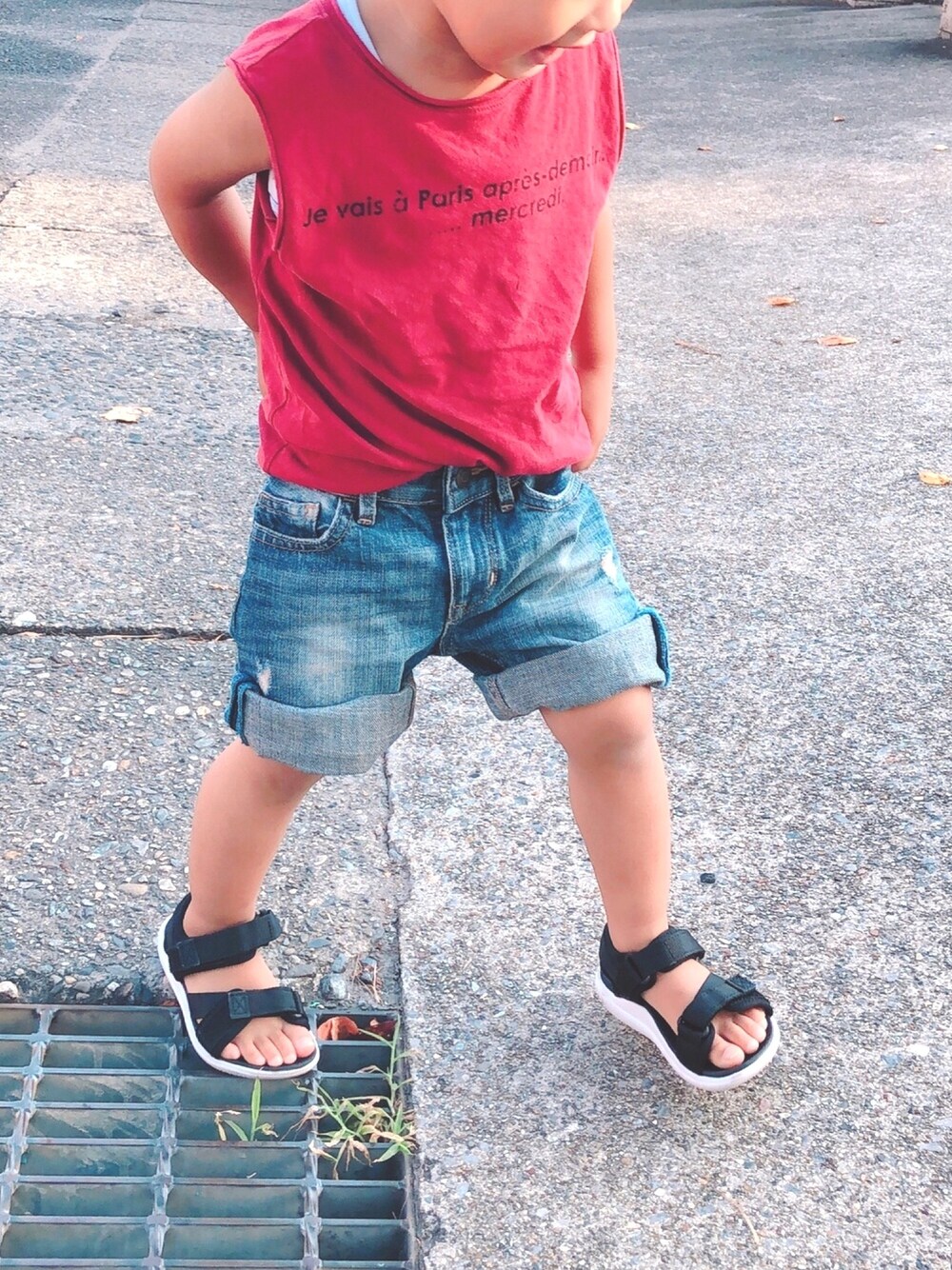散歩道で♥️ これも下の子とお揃いなんだけど 下の子は全然撮らせてもらえなかった😭😭 そして毎回肌着が見えてしまうの惜しい🤣 生着させるの苦手なのでごめんね😢💦 デニムパンツはそのままだと大きかったから 裾折り曲げたらなんか可愛くて正解🙋♀️💜 ちょっとインさせて今風にしました♥️