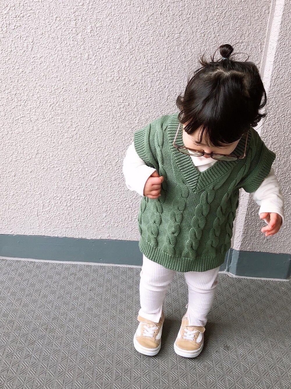 おばあちゃんみたいなコーデ👵♥ ニットベスト可愛い🥺💜 ワンサイズ上を買ったんだけど 思ったより良いサイズ感🕺✨ 暖かくなったら ブラウスでも合わせてみたい🤔❤️