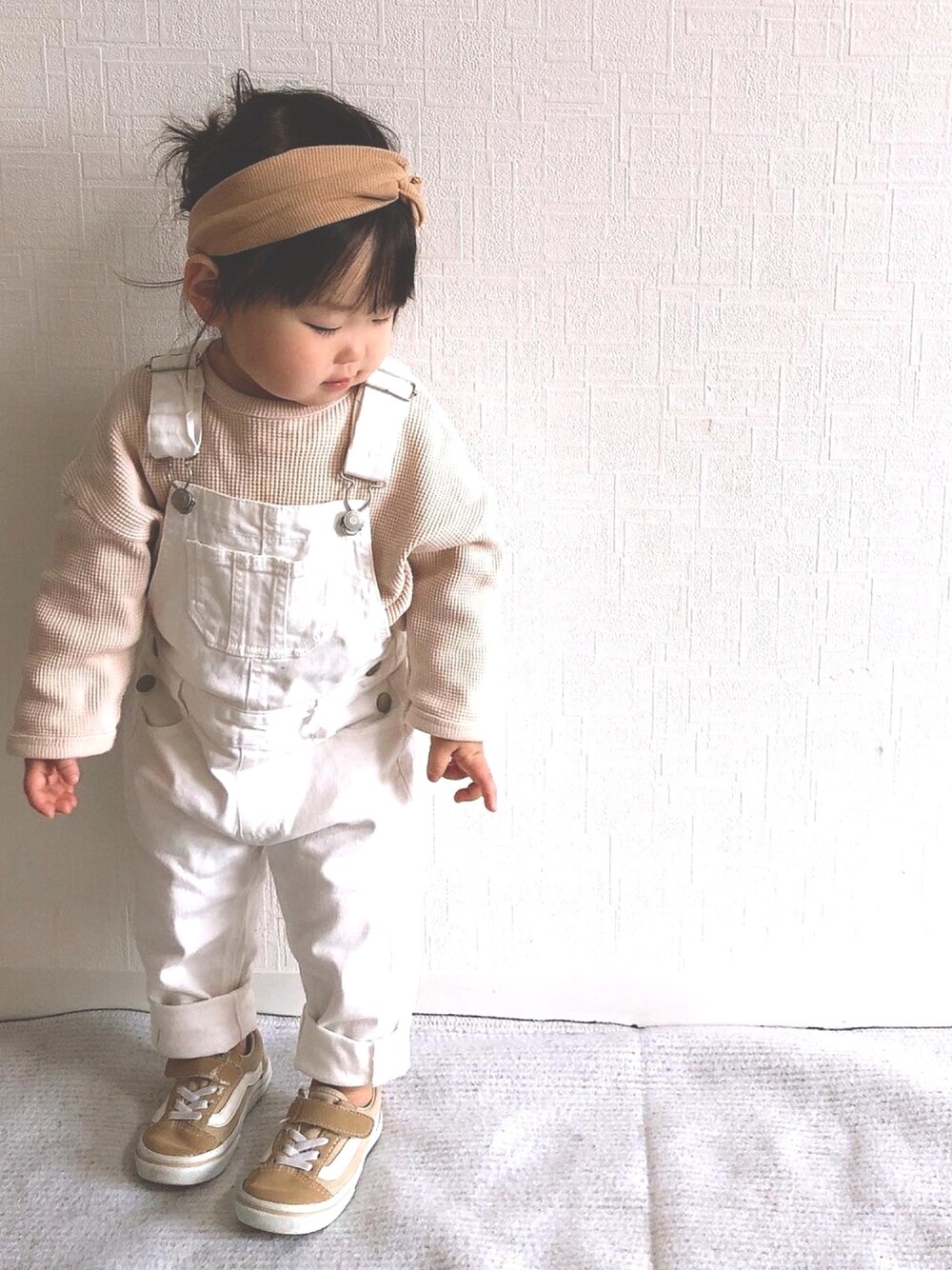 同系色コーデ🧸🤍 白サロペ汚れそうで怖いけど めちゃくちゃ可愛いから 夏も着せたいな🥺❤️