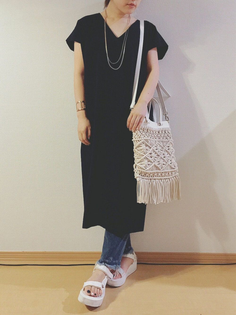 mo.koのワンピース「TR Vネックワンピース_#」を使ったコーディネート