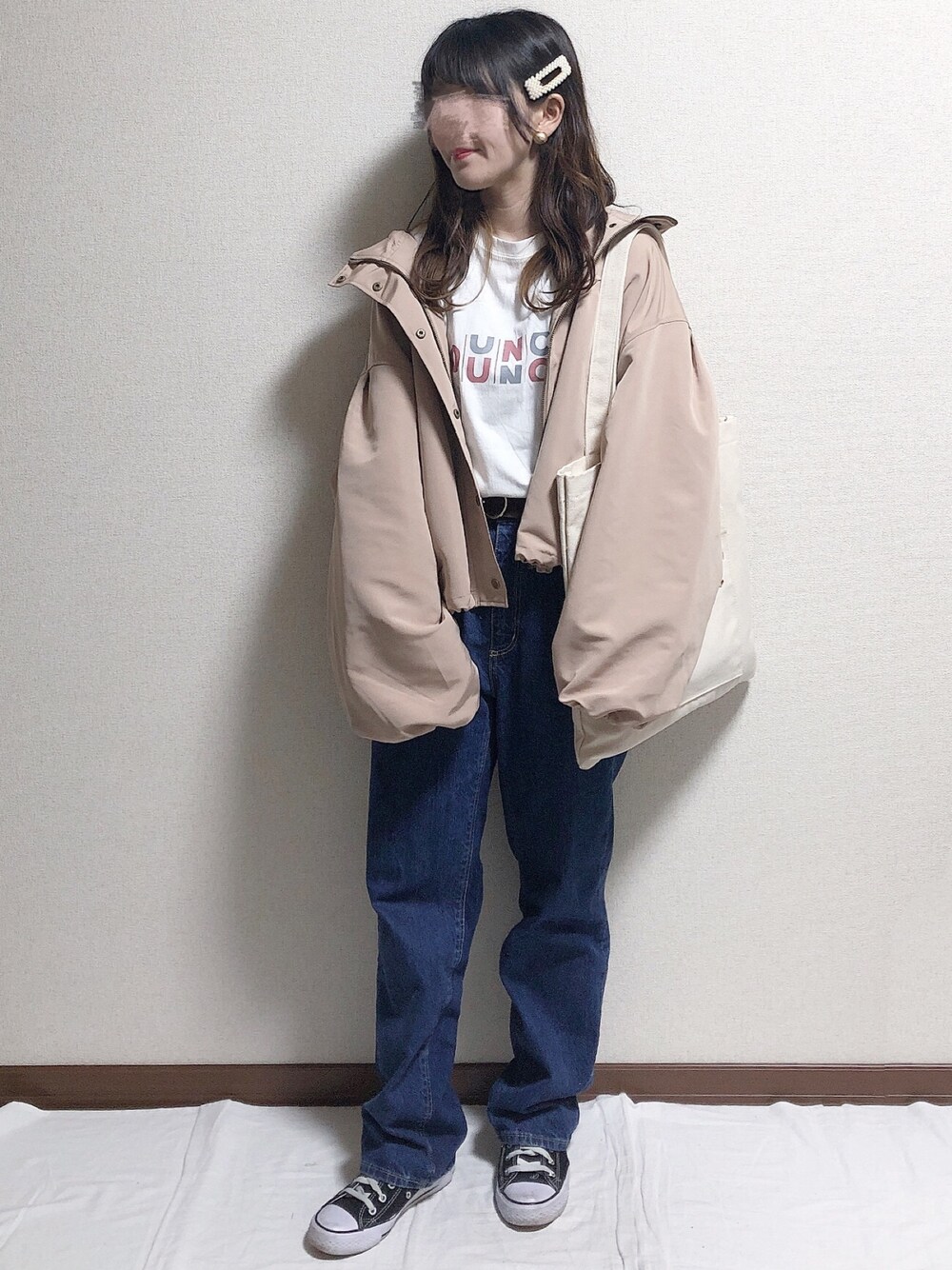 ベージュ?ピンクベージュのマウンテンパーカーは去年から愛用中〜💓