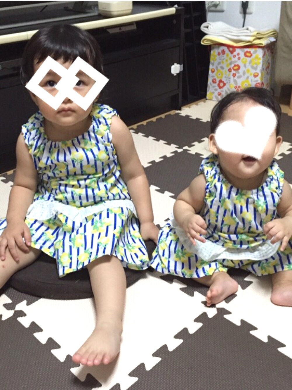 2ヶ月位前の写真 当時1歳&0歳 従姉妹のおそろ服❤︎