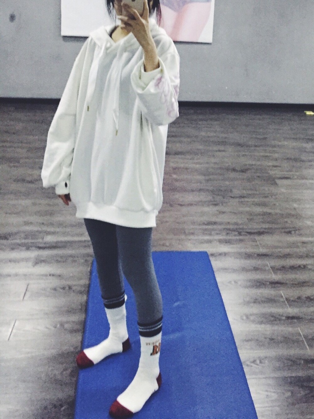 ホワイト系のパーカー、ホワイト系のソックス/靴下を着用したレディースの春コーディネートの1枚目の写真