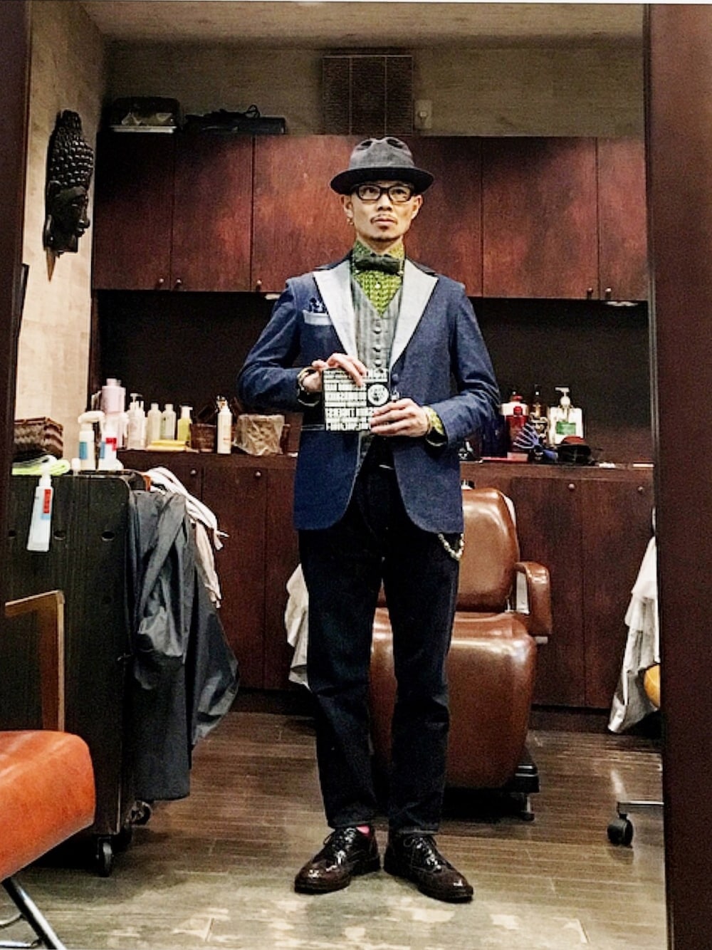ストレッチデニムのタキシード❗️お気に入りです♪(^^) こんな感じでサロンワークしております❗️ サロンスタイルなどはプロフィールに貼り付けてあるInstagramから宜しければご覧くださいm(_ _)m