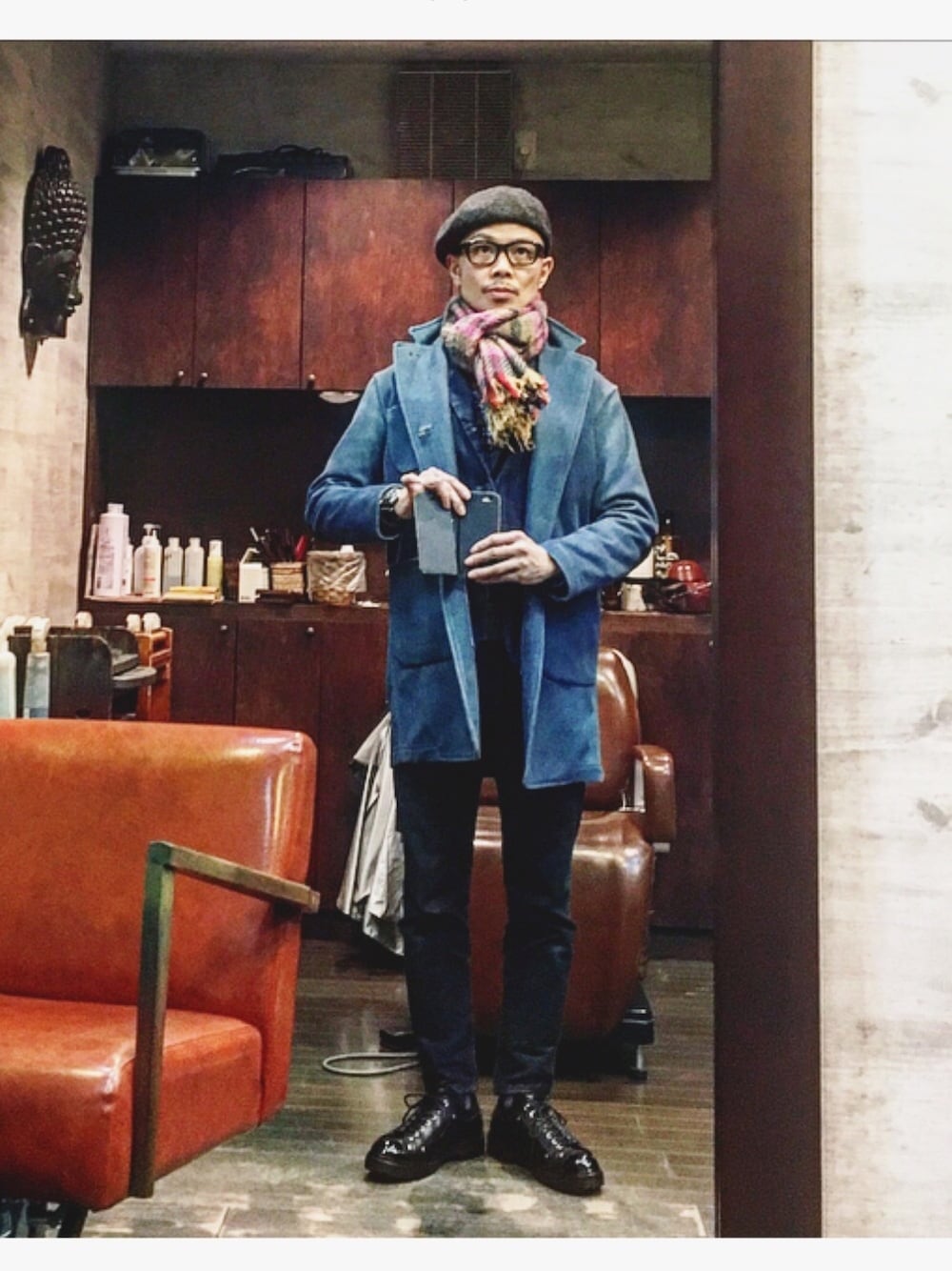 今日の通勤着❗️ フランス製のマフラーで首元暖かいです❗️(^^)
