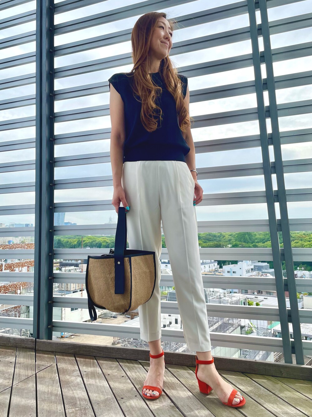 サラッとして穿き心地の良いパンツ。ストレッチがほど良く効き皺にもなりずらいので、長時間座ってお仕事する方におすすめ。洗える素材なので、これから汗をかくシーズンにも安心。シンプルなサマーニットに相性抜群です。 ニットフリーサイズ パンツ9号サイズ