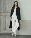 深めのタックの入ったスラウチパンツ。メタルボタンがPOINTのタートルニットと合わて、シンプルな大人コーディネートにしました。 上下ともに9号サイズ着用です。