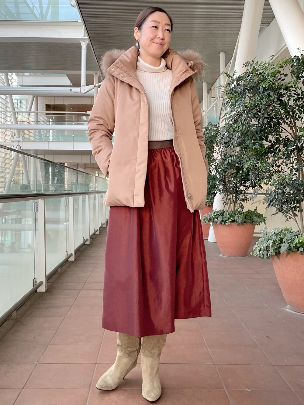本格的に寒くなると欲しくなるダウンジャケットが3wayで登場。ファーのみや、フードごと取り外し可能です。スカートにロングブーツ合わせも素敵に決まります。ラインが綺麗で、様々なスタイリングが楽しめるおすすめダウンです。 全て9号サイズ着用です。