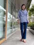 比翼仕立ての3WAYシャツ。前後でリボン縛りをして印象を変えたり、カシュクールにして抜け感を出しても素敵です。シンプルで着心地の良いカットソーを見せてカジュアルスタイリングにしたり、様々な着こなしで遊べますよ。ストレートデニムとの着こなしが大好きです。 カットソーとブラウスがフリーサイズ、デニムは9号サイズ着用。