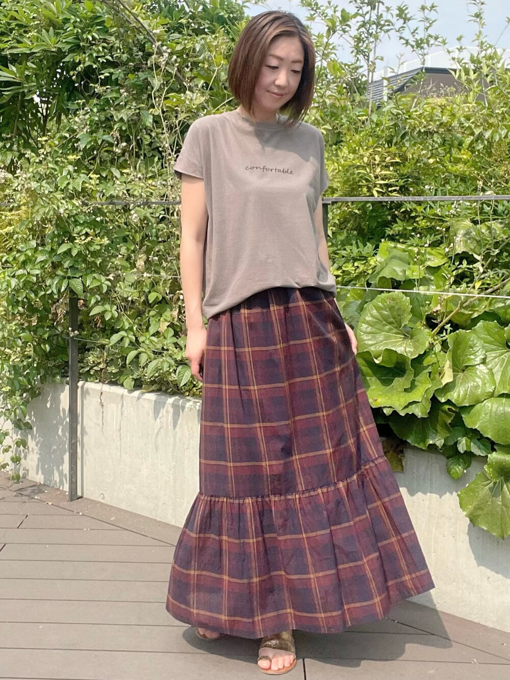 【着用サイズ】カット:9号 スカート:9号 コーディネートテーマは、秋まで楽しめる休日スタイリング。ボルドーカラーで落ち着いたチェック柄スカートは、トップスのカラーを選びません。こちらのグレーカラーは、秋まで楽しめちゃいますよ!