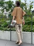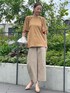 【着用サイズ】カットソー:9号 パンツ:9号 シンプル綺麗目大人カジュアル。シンプルなワントーンコーデですが、ボリュームのあるフレアの袖がアクセントになり華やかな印象に。柔らかな素材で着心地も抜群です。