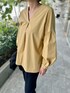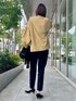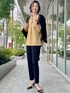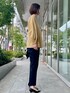 【着用サイズ】ニット:9号 ブラウス:9号 パンツ:9号 秋の通勤コーディネート。デコルテラインがスッキリ見えるギャザーブラウス。ボリューム袖がアクセントになりシンプルなパンツもスタイリッシュに決まります。この時期おすすめのブラウスです!
