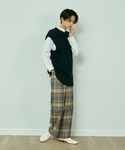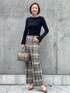 【着用サイズ】ニット:9号 パンツ:9号 。チェック柄が主役!綺麗めコーディネート。女性らしい袖口がフレアーのニット。ややタイトめなシルエットがセミワイドパンツにインするとスタイルアップに!秋らしい色合いのチェック柄は存在感バッチリでコーディネートを華やかにしてくれますよ。