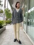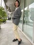【着用サイズ】カーディガン 9号 パンツ:9号 シンプル大人カジュアルスタイリング。インナーにカットソー合わせだとカジュアルな雰囲気になりますが、美脚パンツを穿くだけできちっと感が生まれます。羽織の配色が素敵なカーディガンと相性抜群です!3色の糸を使用しているので他にはないオリジナルカラーがおすすめポイントです。